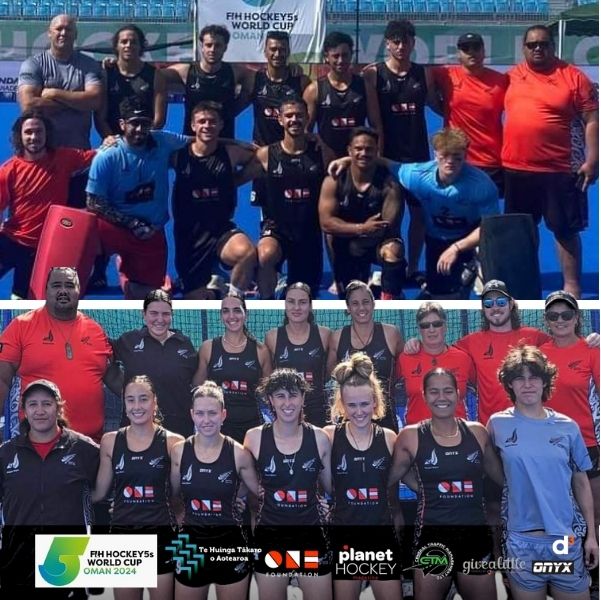 NZ Māori Hockey wāhine and tāne represent New Zealand at the Hockey 5s World Cup. W: 24–27 January 2024; M: 28–31 January 2024 City: Muscat Sponsors Hockey New Zealand One Foundation Limited Planet Hockey Te Huinga Tākaro o Aotearoa Onyx Sports Givealittle CTM D3 Omrub